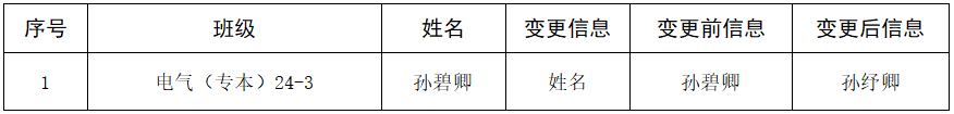 根据教育部关于印发《高等学校学生学籍学历电子注册办法》(教学[2014]11号)规定,经学生申请、学校审核,初步同意以下学生学籍信息修改申请,现公示如下。
