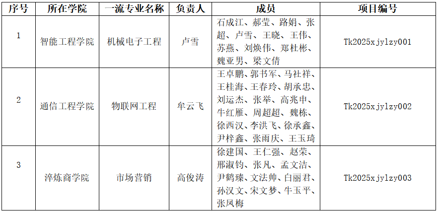 根据《泰山科技学院一流本科专业建设实施方案(试行)》文件精神,经部门初选、专家组评议、学校审议、校内公示等环节,现公布泰山科技学院2025年校级一流本科专业建设点名单:
