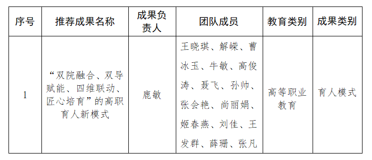 根据《山东省教育厅关于开展2026年职业教育省级教学成果奖评审工作的通知》文件精神,经部门推荐、专家评议、学校审议,最终推选1项职业教育教学成果奖进入省级评选,现将具体信息予以公示: