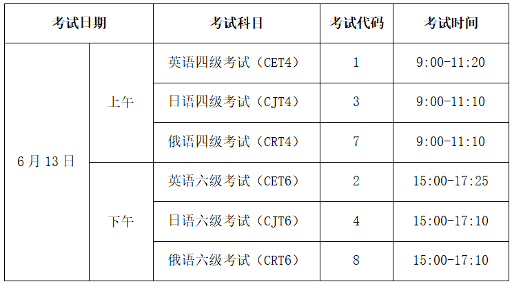 2.英语四级、六级不可兼报。非小语种学生不得报考俄语、日语四六级。