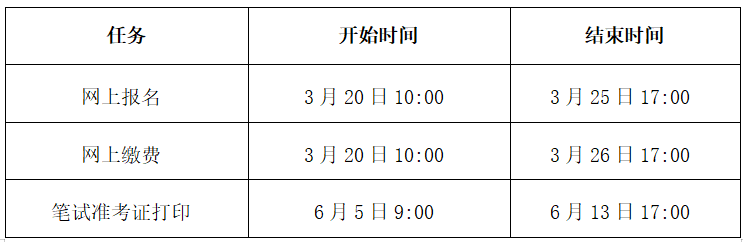 二、报名及考务工作时间安排