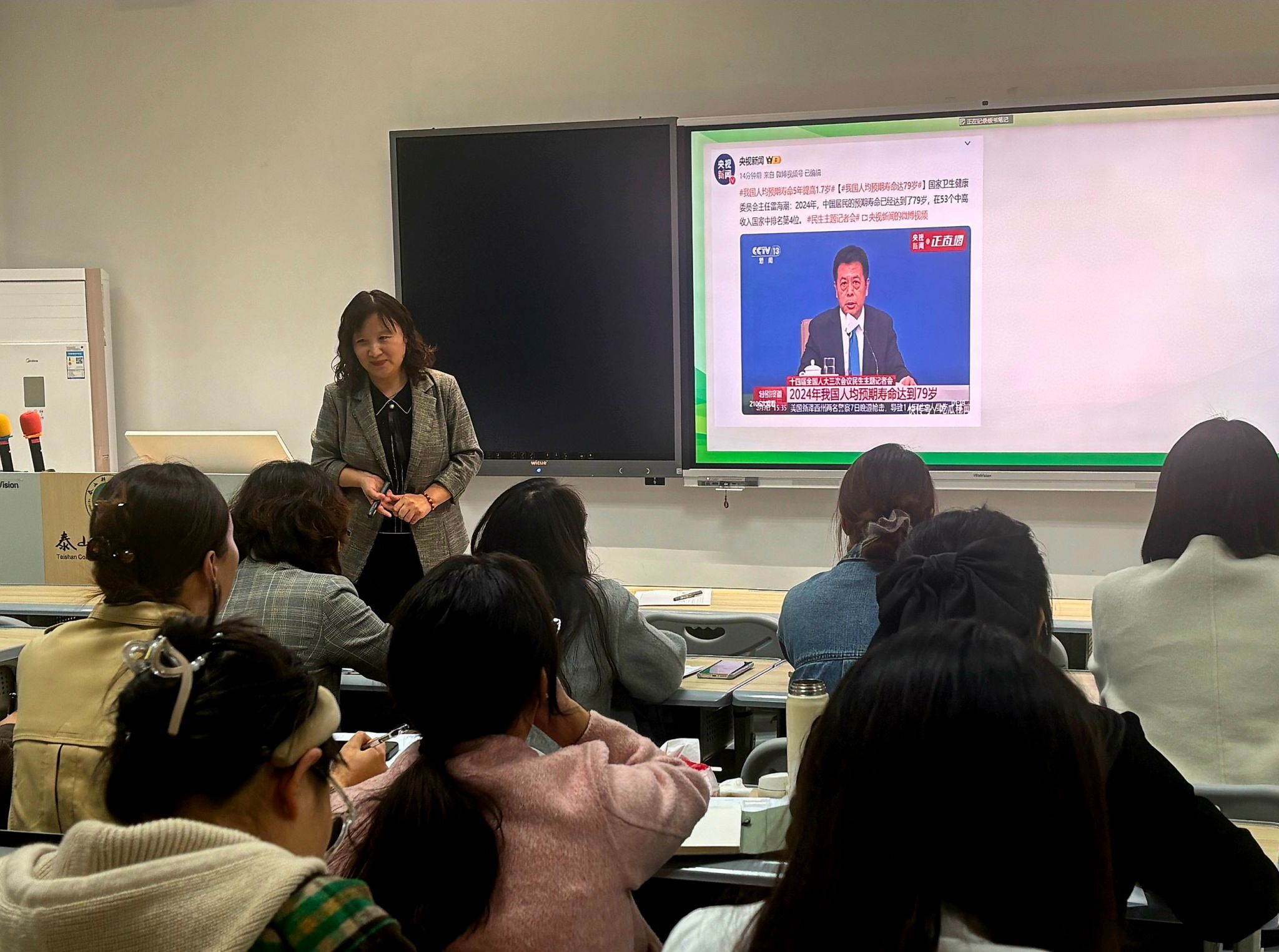 任凤琴教授深耕思政课教学一线多年,在课程建构与教法创新方面经验丰富。示范课上,她以《思想道德与法治》第一章“领悟人生真谛,把握人生方向”第一节为内容,构建了“情境导入-理论阐释-案例佐证-价值升华”的教学框架。任教授通过“生命之线”互动游戏破题,紧扣“人的本质”“人与社会辩证关系”等核心要点,将经典理论与青年成长案例、时政热点深度融合,既坚守理论严谨性,又兼顾表达通俗性,生动体现了思政课“八个相统一”的内在要求,为教师们提供了高质量的教学范本。
