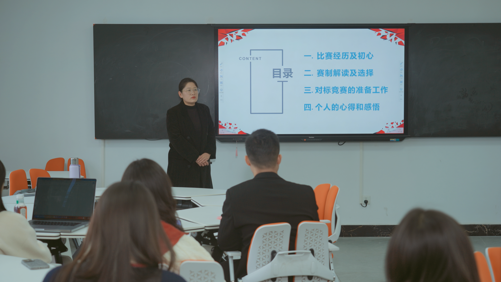 讲座中闫莹老师围绕教学比赛这一主题,从四个方面展开了系统而深入的分享。她首先回顾了自身的参赛历程与初心,强调教学比赛对“以赛促教、以赛促学”的积极推动作用。随后闫老师对各类教学比赛的赛制特点进行了细致解读,并建议教师应结合自身专业方向与教学优势,选择适合的赛事平台,以实现以赛赋能、以赛强技的目标。在“对标竞赛的准备工作”部分,闫老师从课程设计、材料组织、现场展示到赛后反思,层层推进,逐一剖析各环节的关键要点,为在座教师提供了一份实用而全面的备赛指南。最后,她结合多年参赛的实践积累,分享了在教学竞赛中的深刻感悟,鼓励青年教师勇于突破自我、敢于实践创新,将比赛经验有效转化为课堂教学的持续动力,形成教学相长的良性循环。