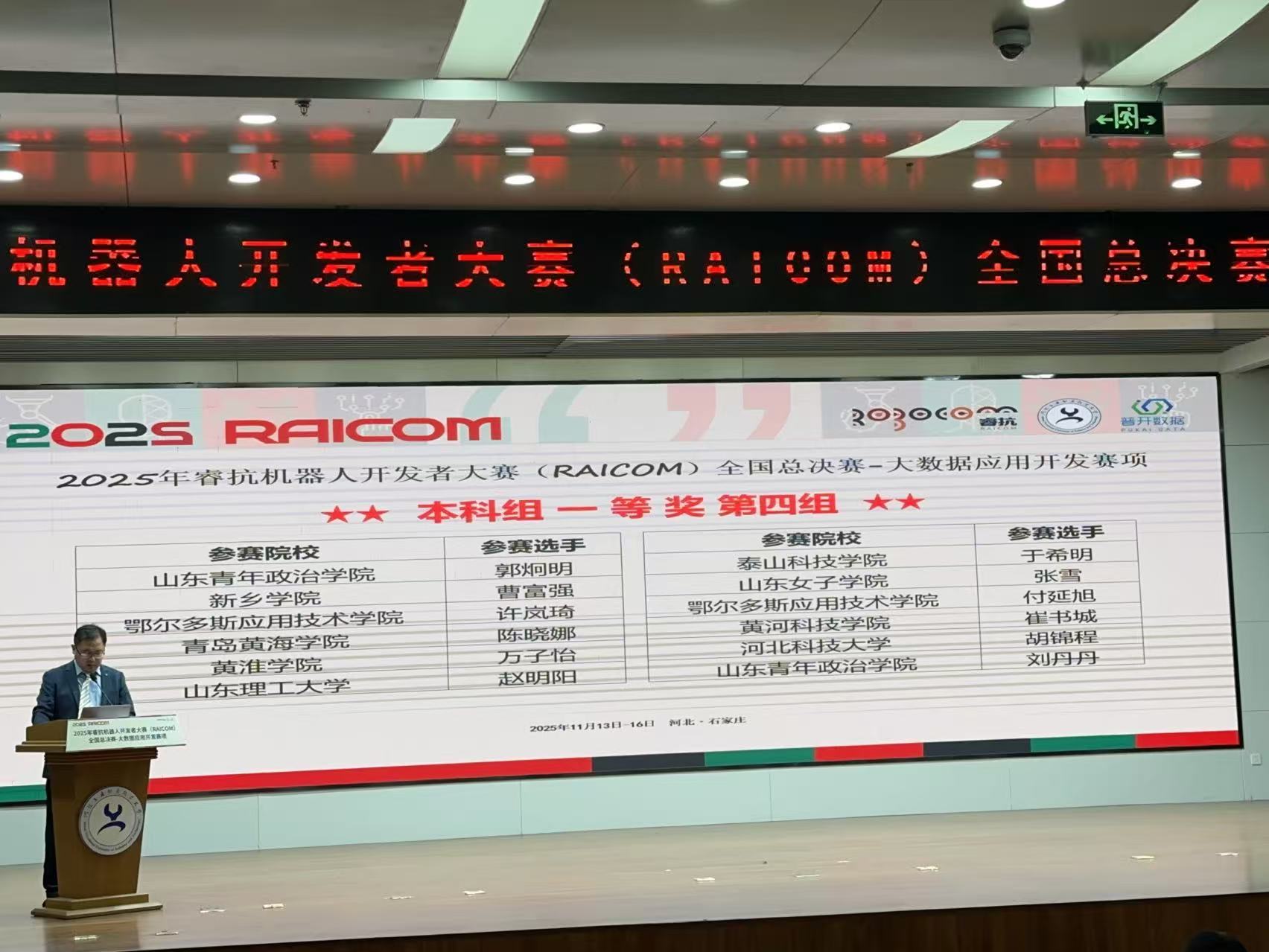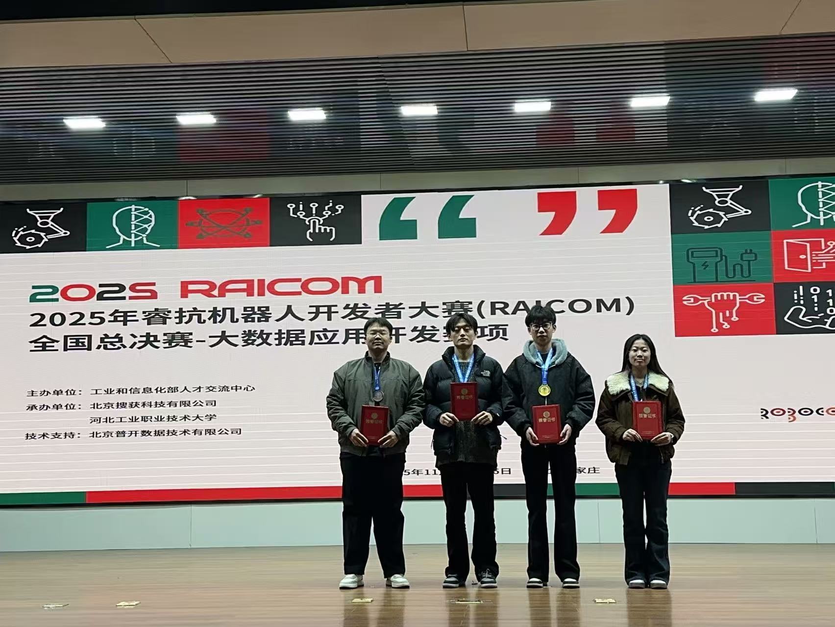为深入推进“教育教学三提三创”主题年活动,大数据学院始终坚持以竞赛实践检验教学成果,以技能比拼激发学子潜能。2025年11月16日,备受瞩目的睿抗机器人开发者大赛全国总决赛圆满落幕。我校大数据学院学子力克强敌,荣获国家级一等奖1项,三等奖3项。