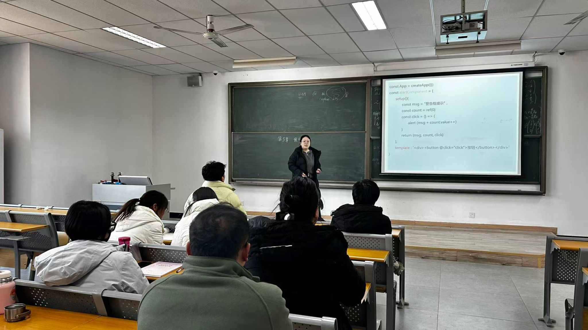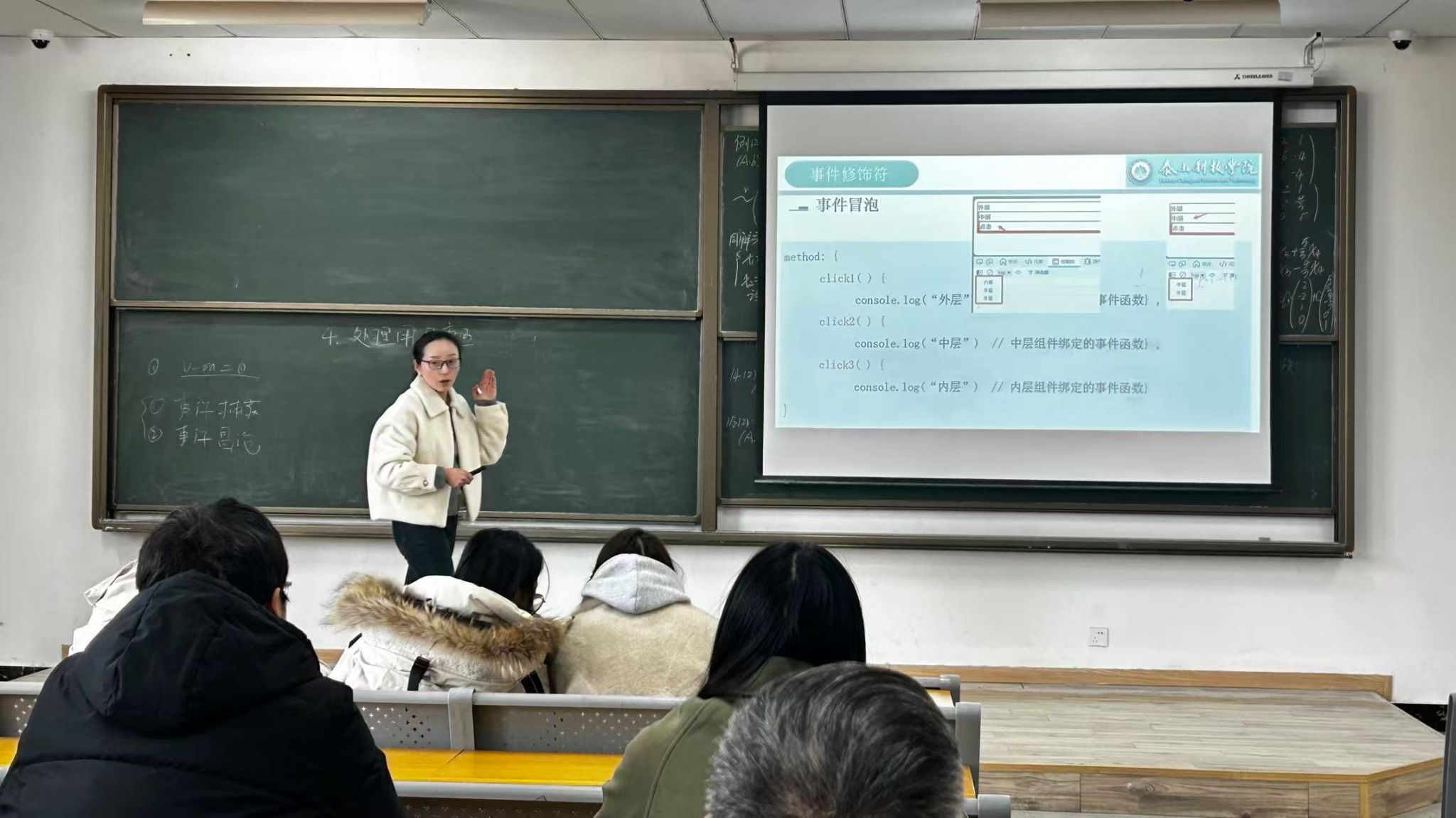 程桂花老师以“处理用户交互”为授课核心,结合前端开发实际应用场景,将抽象的交互逻辑转化为可落地的实践案例。她从Vue框架的响应式原理切入,逐步拆解按钮点击、表单输入、事件委托等常见交互场景的实现逻辑。授课过程中,程老师动态演示了不同事件的交互效果,对比不同实现方案的优劣,引导学生深入理解“高效交互”的设计思路,掌握Vue交互处理的核心技巧。