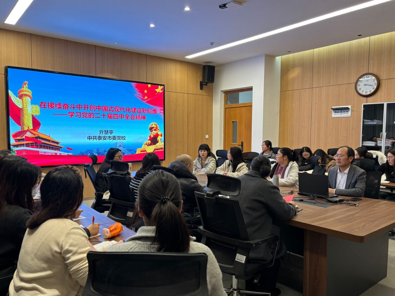 为深入学习宣传贯彻党的二十届四中全会精神,切实推动全会精神深度融入思政课教学各环节、全过程,11月28日,中共泰安市委党校(泰安市行政学院)副校长(副院长)亓慧亭教授应邀莅临马克思主义学院,作题为《学习领会党的二十届四中全会精神》的专题辅导报告。院长助理张丽主持,学院全体教师参加专题学习。