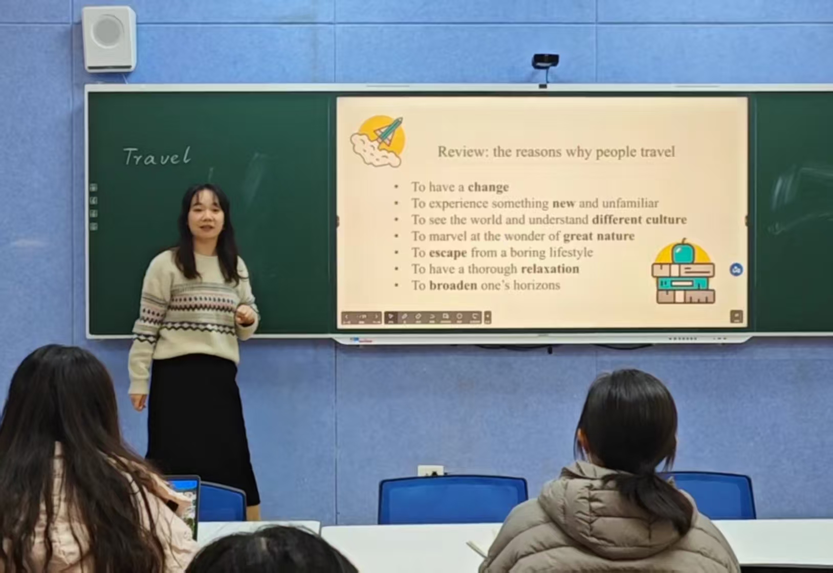 12月5日,李莹老师在《生命伦理与人类发展》的“合成生物科学甄别战”章节教学中,以“哪吒重塑肉身”与“莲藕造骨”科研成果对比引入主题,采用“闯关式”课堂结构,通过“女巫的毒药”互动活动,引导学生总结科学信息甄别法则,凸显培养理性公民的教学目标。观摩教师称赞李莹老师的课程内容衔接自然、案例运用得当,牛志萍院长肯定其进步的同时,也提出优化教姿教态、材料规范性等改进建议。杨美丽老师在《大学英语3》的《The Surprising Purpose of Travel》教学中,以“旅行翻车”短视频导入,结合AI语音技术辅助发音练习,通过合作探究、情景表演等形式,引导学生理解文本“先抑后扬”的写作策略,实现语言学习与技术辅助、情感表达的深度融合,其创新的教学形式与扎实的教学功底获得在场教师一致好评。