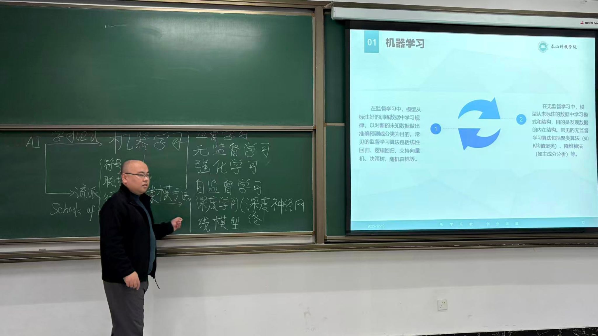 王昊老师带来的《信息技术与人工智能I》课程,则带领学生走进人工智能的前沿世界。他以清晰的知识框图梳理了人工智能的发展脉络与技术体系,重点讲解了机器学习、自然语言处理、计算机视觉等主流应用方向,并结合当前产业实践,展示了AI技术在医疗、金融、交通等领域的落地成果。王老师不仅传递知识,更启发学生思考技术背后的伦理与社会影响,体现了通识教育与专业教育的有机融合。