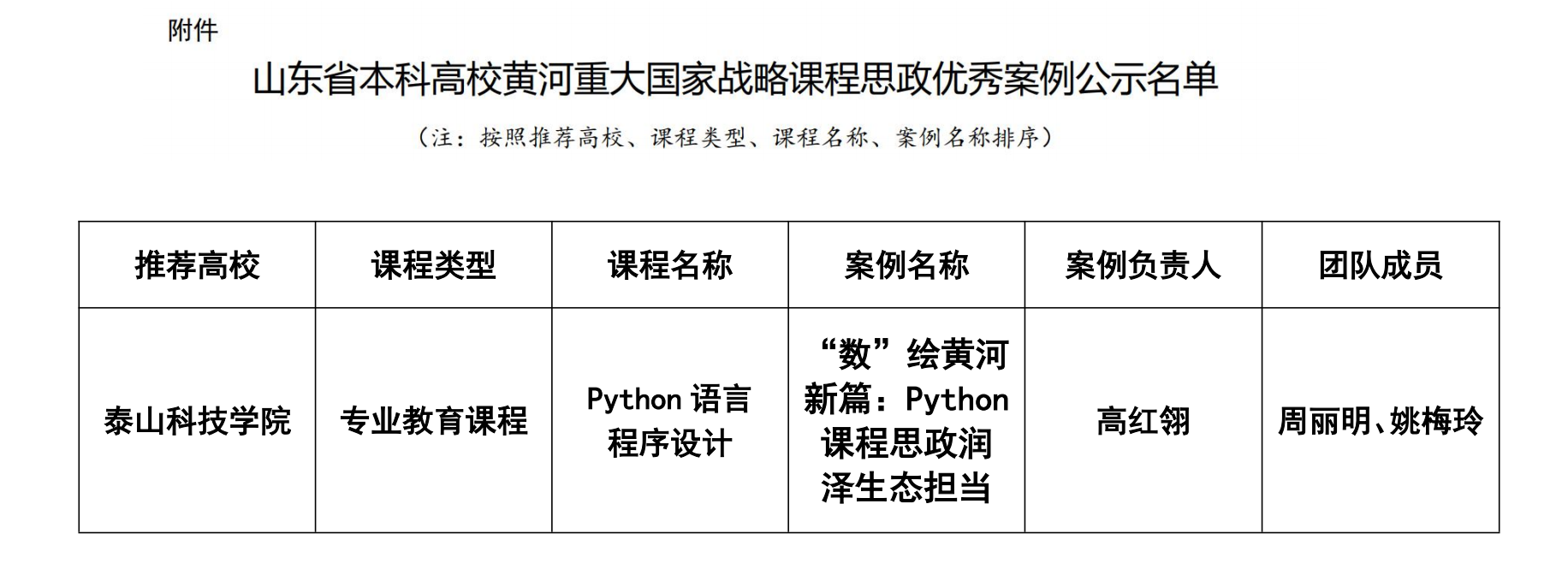 泰科大数据学院1项案例入选山东省本科高校黄河重大国家战略课程思政优秀案例